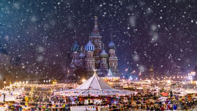 Moscow Dumps Artificial Snow in Red Square for New Year's Display