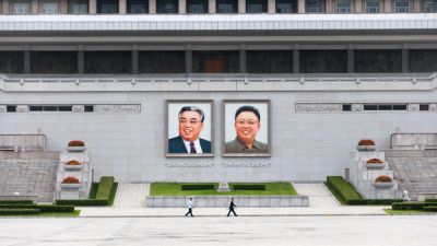 City Square with The Grand People's Study House with portraits of korean leaders Kim Il Sung and Kim Jong Il (Shutterstock)