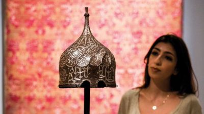 Among the items set to go on sale were a helmet that once supposedly belonged to an Ottoman sultan, a Mamluk glass bowl dating from the 13th century, and a page from a copy of the Qur’an dating back over 1,000 years.