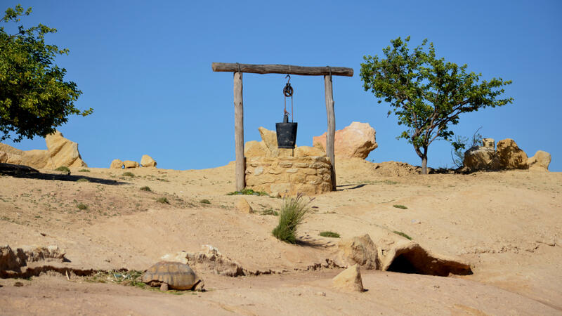 On the other side of the mountains, olive groves are parched, aside from the few that are served by wells.