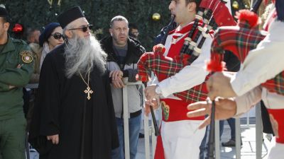 In the square outside the church, a few thousand people watched in the winter sun as Palestinian scouts paraded to the sound of drums. A group of 20 New Zealanders sang carols in front of the 15-metre Christmas tree.