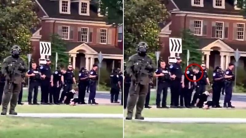 Police in Virginia have come under fire after a video of two officers appearing to spit on a detained protester emerged on social media on Tuesday evening.