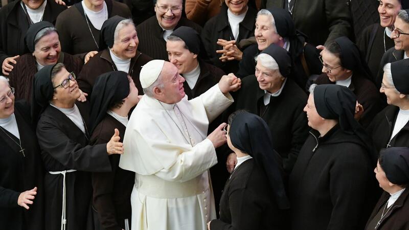 Pope Francis meets with nuns during the weekly general audience on January 15, 2020 at Paul-VI hall in the Vatican. ALBERTO PIZZOLI / AFP