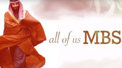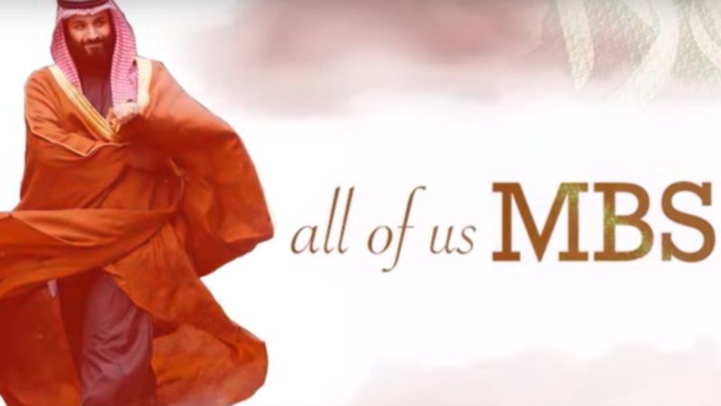 The song, titled All of us MbS, starts off with a sombre, romantic melody before a choir starts singing “all of us MbS” in English, using a well-known acronym for bin Salman.