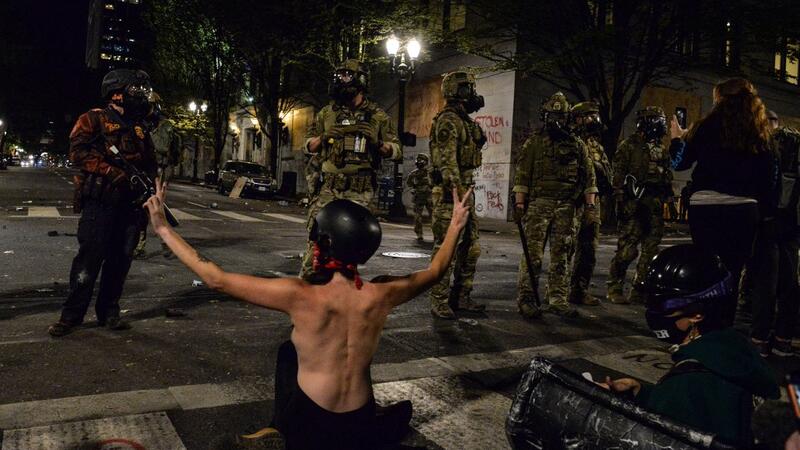 The standoff came after the city of Portland marked its 50th consecutive night of unrest following the death of George Floyd, with crowds taking to the streets to denounce racial injustice.