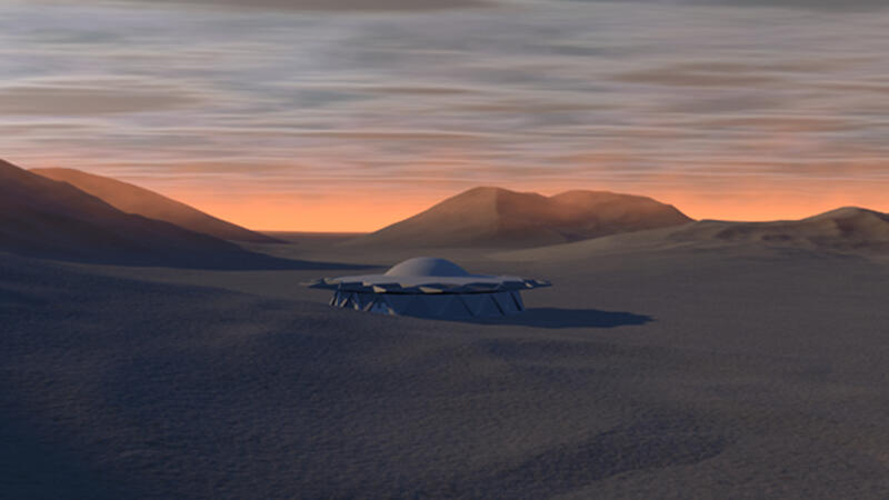 Site-Responsive Installation by Lindsay Seers and Keith Sargent at the Flying Saucer Building in UAE