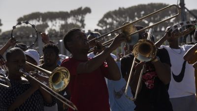 Dressed in the band's distinctive green and white colours, Buzic bounced from one leg to the other as brass players rehearsed outdoors at a school in Mitchells Plain, near Cape Town, on New Year's Eve.