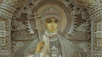 A Ukrainian artist has exhibited a stunning collection of linen threaded icons made using a brand new patented type of macramé.