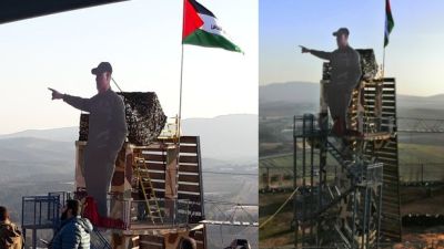 In a video circulating online, Hezbollah members could be seen cheering as the statue was unveiled, alongside a Palestinian flag.