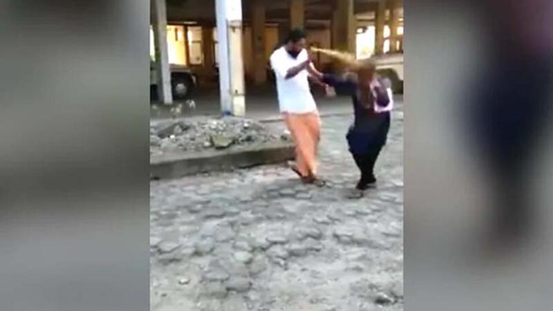 A man sprayed chilli and pepper on the face of Bindu Ammini, who was on her way to Sabarimala temple on Tuesday. (Video Screenshot)