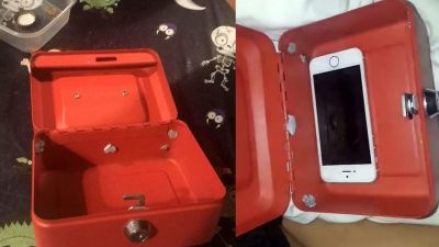 They found an iPhone, as well as a place mat that read 'Keep Calm I'm A Student', which had been used to prop up the phone and blu tack it to the lid of the box.