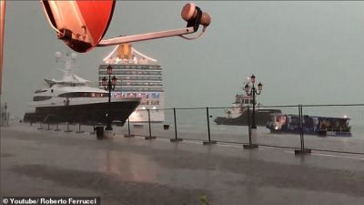 'The violent, extraordinary and sudden meteorological event that affected the entire North East this afternoon, also hit Costa Deliziosa with violent gusts that caused a detour during the passage in the Giudecca Canal in Venice...
