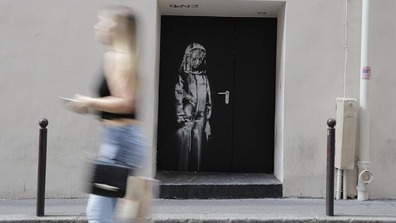 The girl in mourning was created when the artist 'blitzed' the French capital with murals during a whirlwind 2018 trip, which he said was to mark the 50th anniversary of the Paris student uprising of 1968.