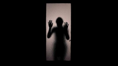 Glass shatters around her and she collapses in a heap on the floor.