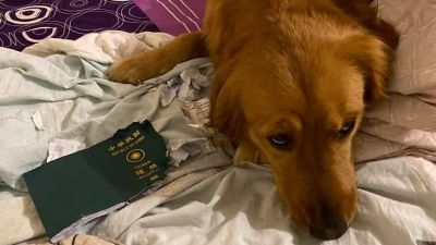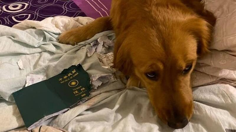 The owner from Taiwan shared a pictured of her tattered passport which her pooch Kimi had bitten chunks from.