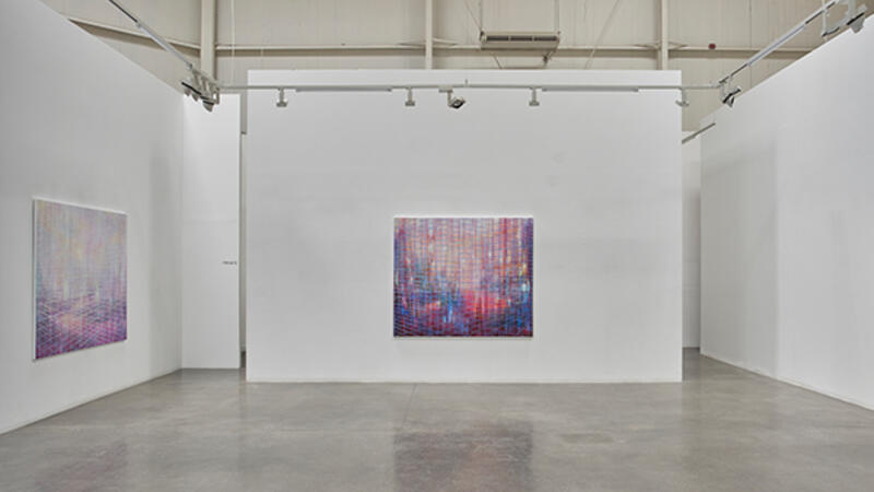 Dusseldorf-based painter Driss Ouadahi returns to Lawrie Shabibi Gallery for his third installation, ‘Extra Muros’ (Outside the Walls). Explore this new collection of paintings which mark a notable shift from his past explorations of social structure to geometric shapes and light.