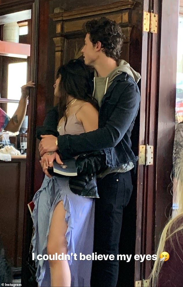 It could be a scene recreated from their recent duet Senorita, as Mendes is wearing a similar white tank top.