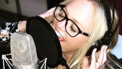 She shared on the micro-blogging platform: "Love being in the studio!!!!