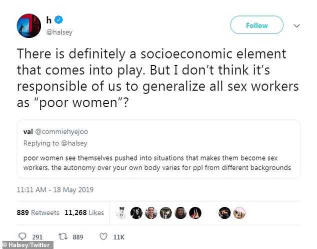 And Halsey did just that on Saturday, opening up the conversation about sex workers on her social media accounts.