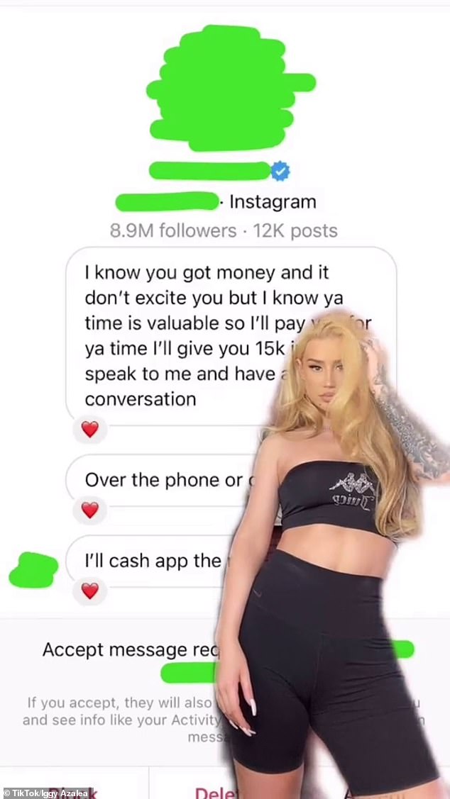 In a video posted to her TikTok account, the Australian star shared X-rated messages and even revealed a $15,000 cash offer from a mystery celeb who was willing to pay just to speak with her.