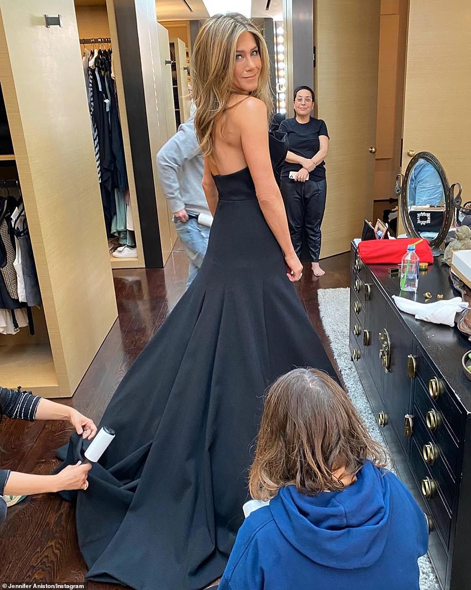 Jennifer shared an image of herself as she got ready for the Globes in her closet with her team; the image showed a different angle of the room.