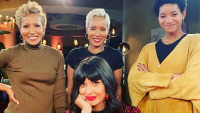 “Coming soon. My cup runneth over. I got to sit at the holy red table about what it’s like to be an honest, open and rebellious feminist-in-progress. Obsessed with these powerful, present and amazing women,” she wrote to her 3.3 million Instagram followers, alongside a photo of herself with the Pinkett-Smith family, including Jada’s daughter with husband Will Smith, Willow, as well as her mother, Adrienne Banfield-Jones.