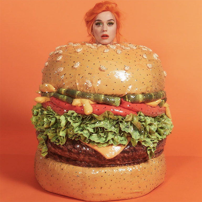 Katy Perry Falls on Her Backside Dressed as Hamburger