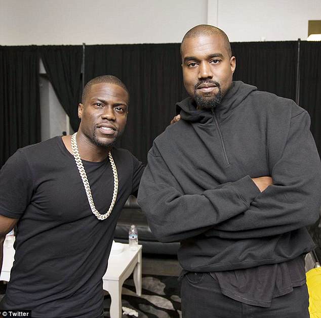 Buddies: Kanye had been giving out new pairs of Yeezy 500 Boost shoes earlier in the day, prompting speculation he had something for Kevin and Eniko