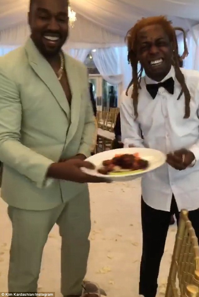 The happy couple: Kimye congratulate 2 Chainz and his new bride Kesha Ward on their nuptials