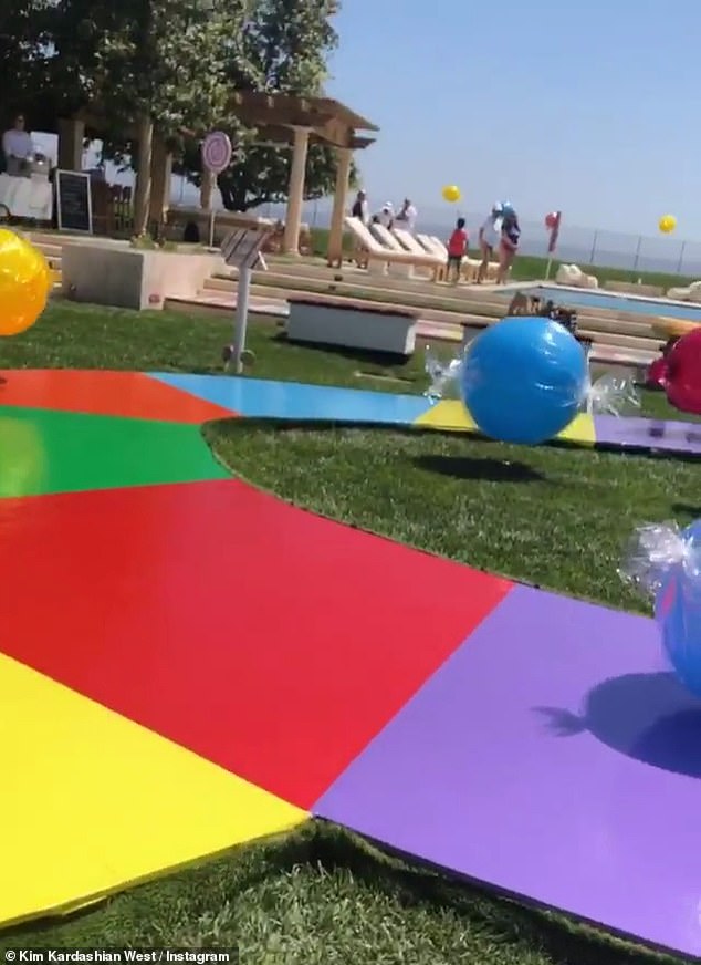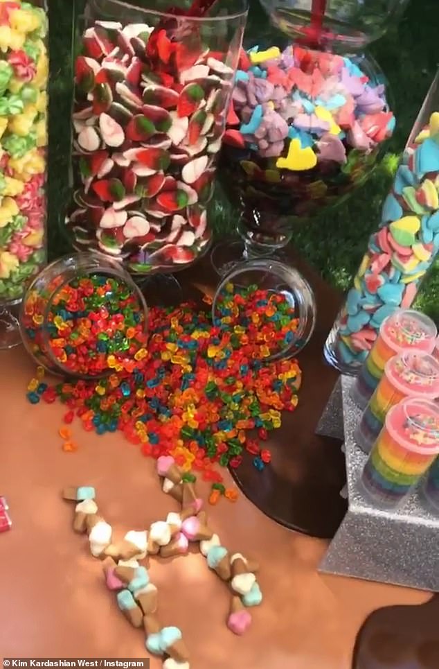 With Kim's daughter North turning six over the weekend and Kourtney's second-eldest child Penelope set to turn seven in July, the famous mothers spared no expense when it came to the event - which was Candyland themed.