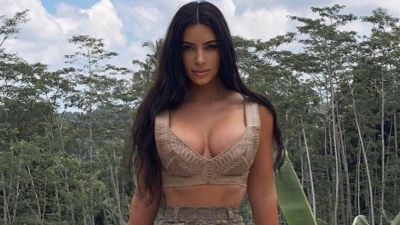 The next day Kim was pretty in purple, rocking the same subdued hues as hubby Kayne has been in the wake of his smash success Sunday Service at Coachella on Easter Sunday.