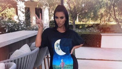 The reality star, 38, pursed her lips and flashed a peace sign as the shirt featured a graphic of a woman walking under a crescent moon.