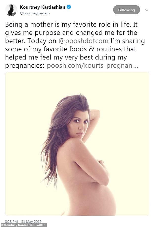 The Keeping Up With the Kardashians star - who has children Mason, nine, Penelope, six, and Reign, four, with her ex-partner Scott Disick - really enjoyed growing her babies in her belly because being a mother is her 'favorite role.'