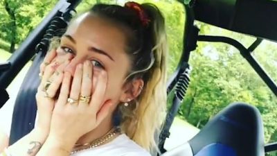 The film star continued to smile as they drove before emitting a high-pitched scream that made Miley jump and put her face in her hands as Liam laughed.
