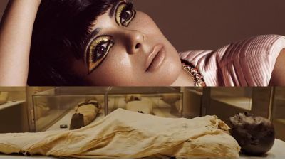 The mummies are going to be carried in boxes on carts designed in a Pharaonic style, and next to them are people wearing Pharaonic costumes.