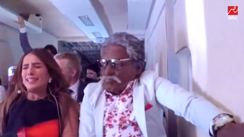 Paris, Zeina and a host of other Arab celebrities were individually invited to a hotel opening by Galal's team. But before heading to the venue, they were given an aerial view of Dubai aboard a small plane. That's when the pilot makes it seem as though he's lost control of the aircraft as it begins to nosedive to the ground.