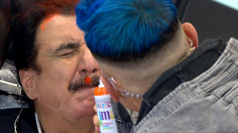 During one sketch, Ramez sprayed Hassan's mustache with red dye as well as his hair.