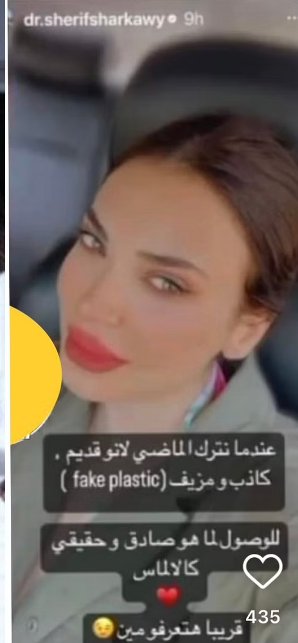 In detail, Sharkawy posted on his Instagram story a picture of a woman without saying who she was, but referred to her as "diamonds," and referred to Tafesh as fake plastic.