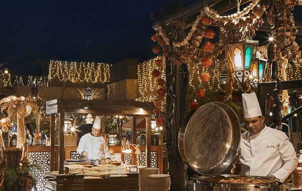 Feast in the desert like a royal Bedouin at Bab Al Shams Desert Resort & Spa. The luxurious getaway has organised a splendid Iftar throughout the month at Al Hadheerah restaurant. Indulge in authentic Arabic cuisine under the glittering sky while oud and kanun musicians, Tanoura dancers and more shed a spotlight on local culture. This family-friendly Ramadan destination also offers great fun for little ones, who will love the crafts corner, face painting and bouncy castle to entertain them through the night.