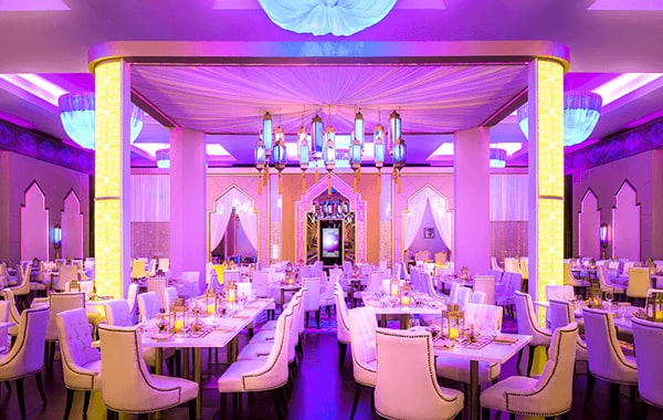 Every year, Fairmont The Palm sets up one of Dubai’s most popular Ramadan tents – Fairuz. This elegant affair is designed in traditional Moroccan style with elaborate décor that puts you at the heart of an Arabian tale. Whether you’re looking for an intimate meal with family and friends, or are in the mood for a grand affair, this large venue sets the stage for every kind of evening. Both Suhoor and Iftar are on offer with a delectable buffet menu of Arabic and international flavours.