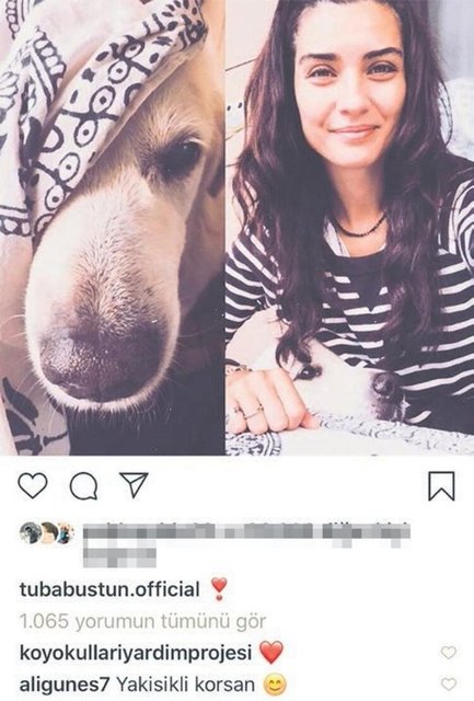 Most recently, Büyüküstün shared a picture of her dog with her 4.3 million followers on Instagram, and captioned it with a love heart emoji.