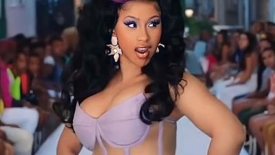 The WAP singer is then seen again as she walks down the runway with both hands on her hips as she tries her best supermodel moves while not smiling even a little.