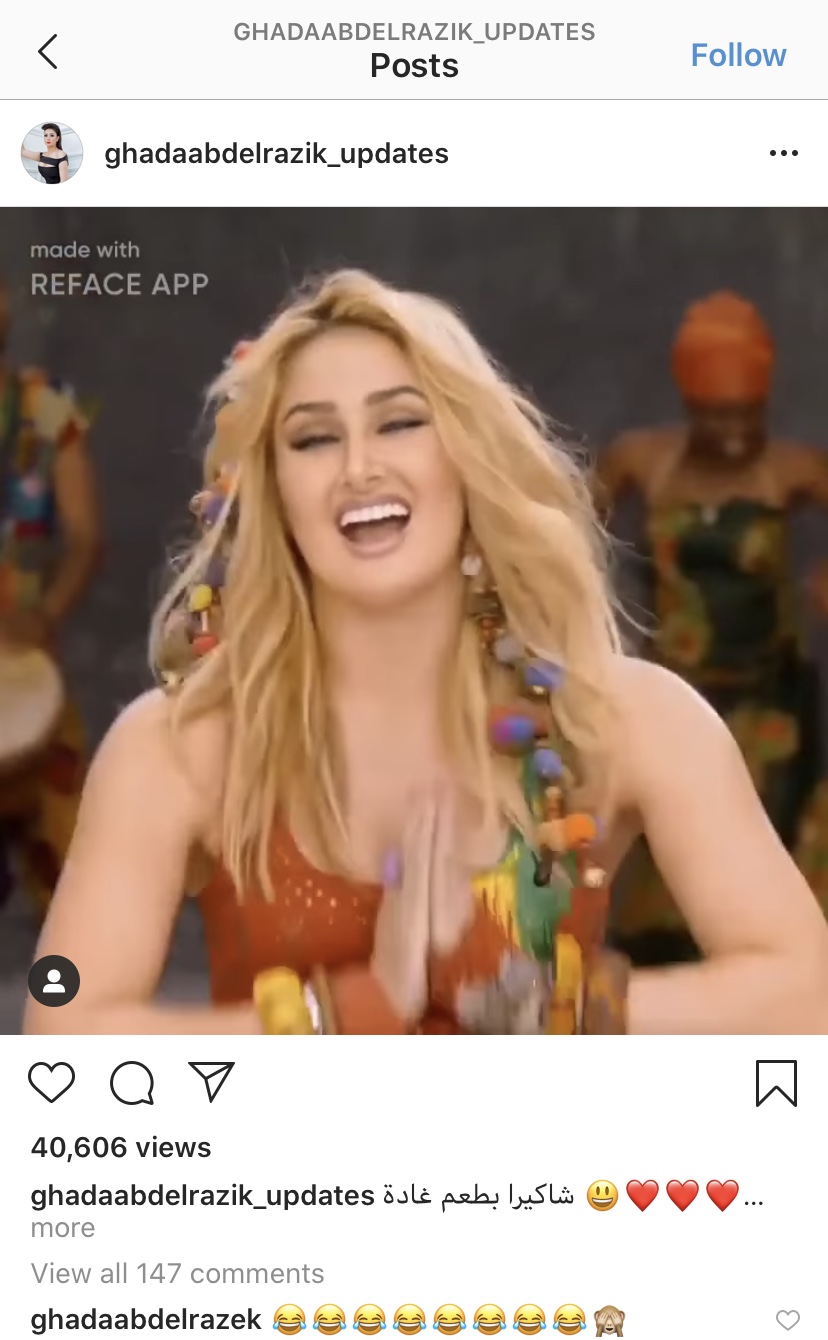 Well it wasn't Ghada personally dancing in the video, in fact the account admin used Reface App to paste Abdel Razek's face on Shakira's in the video.