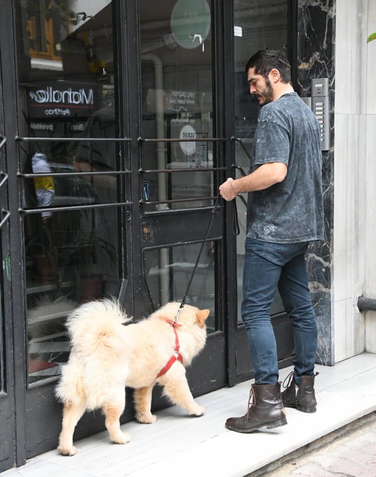 Some reporters were able to photograph the Turkish actor after he walked Soydan's dog and was going back to her apartment.