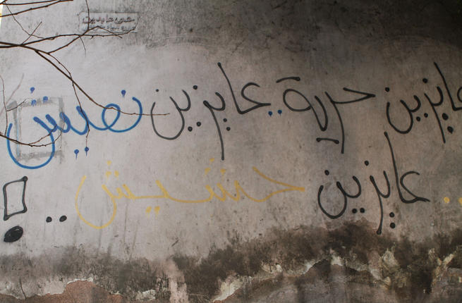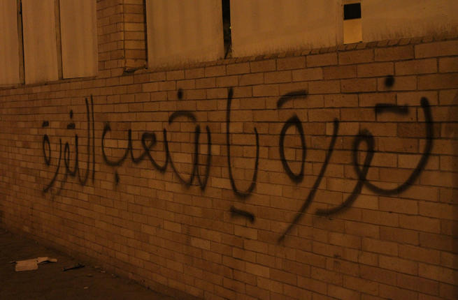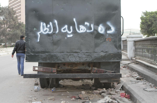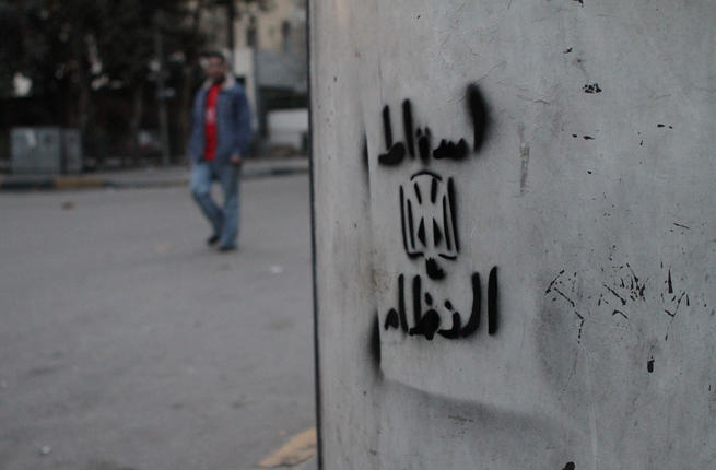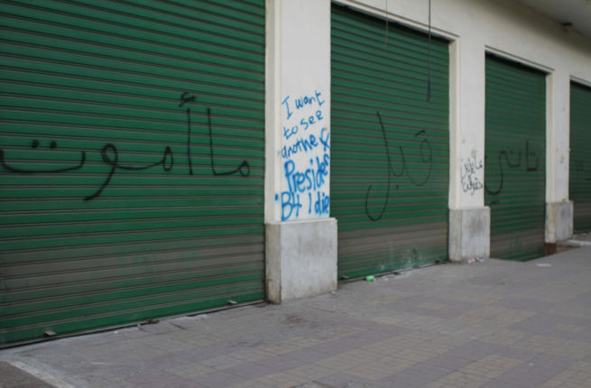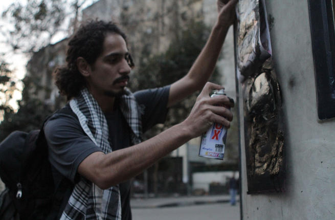 Published February 1st, 2011 - 08:03 GMT Graffiti as a way of communicating to a seemingly stone deaf veteran leader who might see if he's utnil now refused to listen. The resounding message: Leave now, thief!Photos by: Sarah Carr View as a slider View as a list An Egyptian man spraying a graffiti paint on the the wall. "No to corruption". "No to Mubarak". "The people want the regime to fall". "Revolution, people, the revolution". "No to Mubarak, 30 years of theft". "We want freedom we want to live we want Hashish". "Leave you coward". "Down with Mubarak". "Mubarak is a thief Mubarak is a thief". "Down with Mubarak". "Down with the regime". "This is the end of injustice". (R) "We want our rights". Previous Next Previous Next An Egyptian man spraying a graffiti paint on the the wall. "No to corruption". "No to Mubarak". "The people want the regime to fall". "Revolution, people, the revolution". "No to Mubarak, 30 years of theft". "We want freedom we want to live we want Hashish". "Leave you coward". "Down with Mubarak". "Mubarak is a thief Mubarak is a thief". "Down with Mubarak". "Down with the regime". "This is the end of injustice". (R) "We want our rights". You may also like Subscribe Sign up to our newsletter for exclusive updates and enhanced content Subscribe Now Subscribe Sign up to get Al Bawaba's exclusive celeb scoops and entertainment news LatestPopular Meet Moya: First robot with almost 100% human-like body language Huda Beauty shares apology video over Iran 'pro-regime' post Police helicopter crashes in Arizona Train crashes with a car, leaving 2 killed in Tartus, Syria Terrifying video: Balloons catch fire inside elevator in India Loading content ...