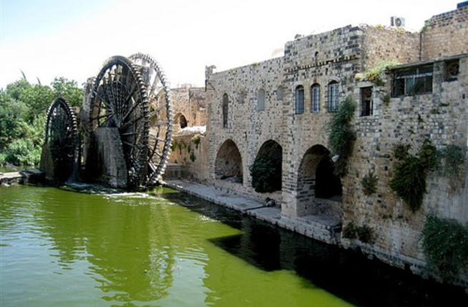 The river, the Orontes ('Assi' in Arabic) runs through it. Hama is known for its characteristic water mills. Visitors today are