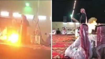 The wedding that was taking place in Mecca in Saudi Arabia in seconds turned into a human disaster when the cameraman stubbed his cigarette in a bag of gunpowder mistaken for the trash.