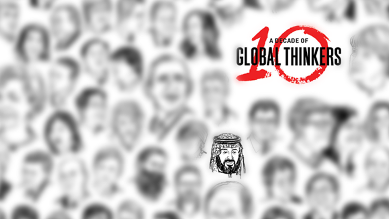 The Saudi de-facto power, Crown Prince Mohammed bin Salman, aka MBS, has been featured in the annual list of top ‘100 Global Thinkers’ in Foreign Policy magazine.