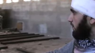 In November 2013, al-Abdullah takes shrapnel to the head from an airstrike (NSFW strike at 16:50):