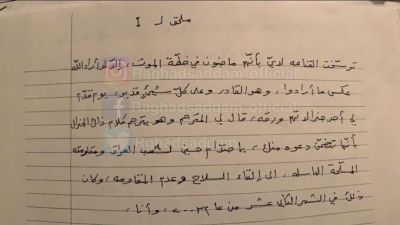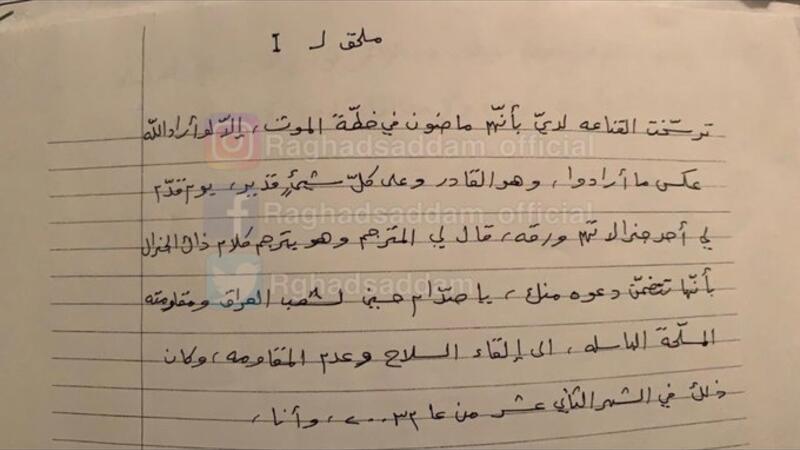On her Twitter, Raghad posted the letter's photo with a caption reads: “Part of the letter sent by martyr president Saddam Hussein to his daughter from prison”.